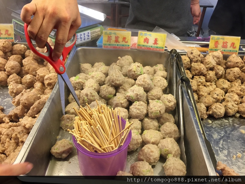 經過這攤現做丸子的攤位,想不試吃都很難,熱情的很,一次給一顆~